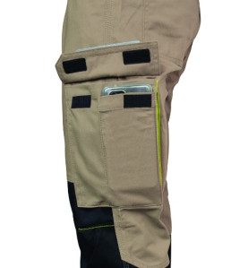 Pantalone Kavir è un modello polifuzionale di pantaloni da lavoro in robusto tessuto misto cotone particolarmente leggero e resistente con pratiche tasche porta metro, porta penna e tasche cargo posizionate su entrambe le gambe.