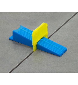 Il cuneo, con una lunghezza di 90 mm e una larghezza di 22 mm, viene inserito durante la posa all’interno del livellatore e, grazie al suo fissaggio con la pinza, consente di ottenere la planarità tra piastrelle adiacenti.