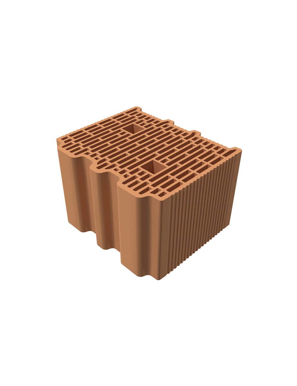 Blocco in laterizio in Categoria I ad elevata biocompatibilità. Incastro, fori verticali, alleggerimento in farina di legno, ideale per la realizzazione di murature di tamponamento.