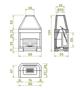 Il focolare offre una notevole capacità di accumulo del calore e garantisce una durata illimitata del prodotto.