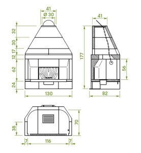 Le pareti del focolare sono di elevato spessore in refrattario.