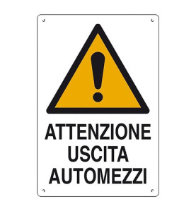 Contenuto: Di solito presenta la scritta chiara e leggibile USCITA AUTOMEZZI , accompagnata da un simbolo di avvertimento.