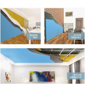 È la soluzione ideale, all’insegna dell‘assoluta facilità di installazione e con totale assenza di polveri al taglio, per creare ambienti acusticamente perfetti e migliorare le prestazioni acustiche di murature e/o solai esistenti.