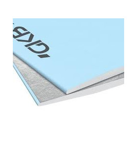 Lastra advanced Knauf in cartongesso, con barriera al vapore sulla parte retrostante costituita da un foglio di alluminio dello spessore di 15 μm, che garantisce una bassissima permeabilità al vapore.