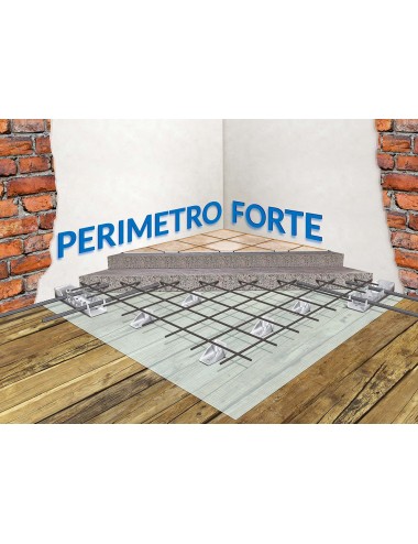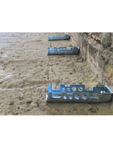 Connettore Perimetrale CentroStorico, elemento prismatico in acciaio zincato, nervato sulle pareti laterali per ospitare le barre di armatura longitudinali, atte a formare la cerchiatura perimetrale.
