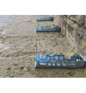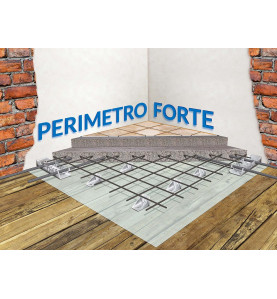 Connettore Perimetrale CentroStorico, elemento prismatico in acciaio zincato, nervato sulle pareti laterali per ospitare le barre di armatura longitudinali, atte a formare la cerchiatura perimetrale.
