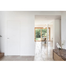 ECLISSE Syntesis Line Battente è il telaio che ospita una o due porte battenti senza stipiti completamente a filo muro con la parete. Scorrendo con la mano sulla superficie, la sensazione sarà quella di un'unica parete continua senza alcuna interruzione.