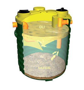 Impianto di trattamento di acque reflue di dilavamento di superfici impermeabili contaminate da idrocarburi, oli minerali e sedimenti pesanti, per parcheggi, officine e garage