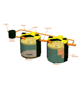 L’impianto permette di trattare in continuo le acque di pioggia provenienti dal dilavamento di superfici impermeabili fino a 9000 m2 di transito e parcheggio per aree industriali, residenziali e stazioni di servizio potenzialmente inquinate da oli minerali, idrocarburi, sabbia e inerti. Il sistema di trattamento acque di prima pioggia sfrutta l’azione di un separatore di sabbie e oli a funzionamento continuo in grado di trattare portate fino a 50 l/s. Le acque di dilavamento provenienti dalle aree di transito impermeabili devono essere convogliate al sistema di trattamento. Nelle vasche di trattamento viene inviata una portata data dai primi 5 mm di un evento meteorico scaricati in 15 minuti; per portate superiori si attiva il by-pass che invia al recapito delle acque bianche, le acque in eccesso.