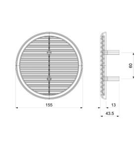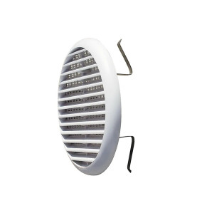 griglia di ventilazione in plastica diametro 155 mm, con molle di fissaggio. Idonea per fori di ventilazione da diametro 80 mm a 125 mm. Passaggio aria 100 cm². Completa di rete antinsetto. Colore bianco.