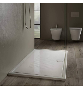 Il piatto doccia è installabile sia a filo pavimento che da appoggio.