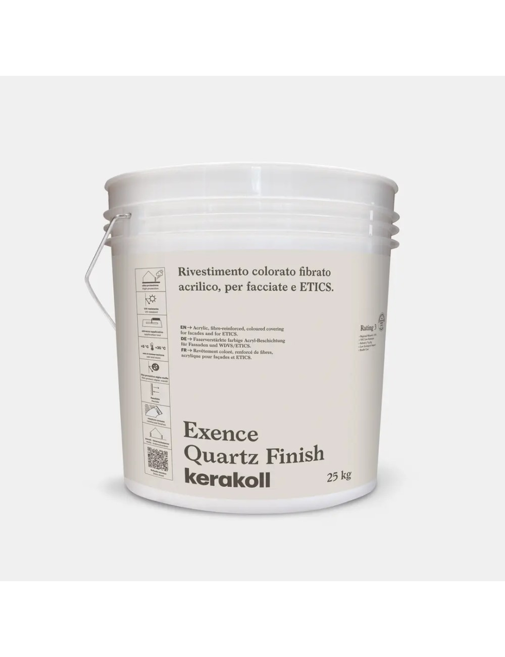 Rivestimento colorato fibrato acrilico, per facciate ed ETICS.Ideale per realizzare rivestimenti a spessore, grazie al suo effetto estetico compatto.Exence Quartz Finish è caratterizzato