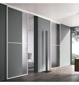 - Materiali: Le porte sono realizzate con un telaio perimetrale in alluminio leggero, resistente e indeformabile, abbinato a vetri trasparenti, satinati o colorati.