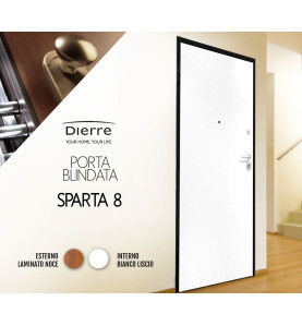 Porta blindata, liscia destra, marchio Dierre, linea Sparta 8, per chi ama la semplicità nelle forme ma desidera al contempo godere di una robustezza in grado di sfidare il tempo.