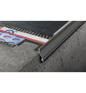 PROTERRACE ECO DRIP è un profilo perimetrale in alluminio verniciato a polvere, appositamente studiato per proteggere i bordi delle piastrelle posate sui terrazzi e balconi e per garantire un corretto deflusso delle acque.