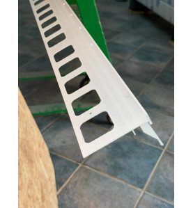 I piccoli fori, con diametro 2.5 mm, permettono un momentaneo bloccaggio del profilo con chiodi mentre l’aletta di ancoraggio traforata garantisce il suo definitivo fissaggio al supporto.