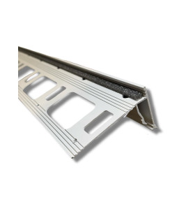 PROTERRACE DOUBLE DRIP è un profilo perimetrale in alluminio studiato per proteggere i bordi delle piastrelle su terrazzi, balconi e marciapiedi e per garantire un corretto deflusso delle acque.