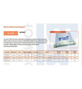 La rete porta intonaco Glasstex , di Biemme, una rete in fibra di vetro del peso di 150 grammi al metro quadrato utilizzata principalmente per l'armatura ed il rinforzo dei rasanti, sia nei sistemi a cappotto che per il rivestimento di facciate con il sistema della rasatura armata.