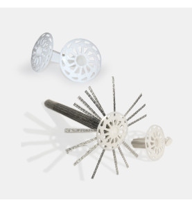 Iniettore in polipropilene e fibra di vetro, specifico per sistemi di connessione a fiocco, ricavabili dai tessuti in fibra di acciaio galvanizzato Geosteel G ad altissima resistenza
