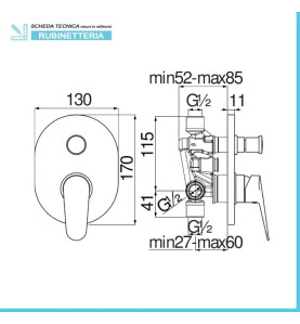 Miscelatore doccia incasso con deviatore Nobili – riepilogo caratteristiche tecniche: