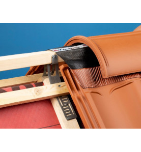 Un portalistello colmo ti aiuta a completare il tuo tetto facilmente e con praticità. Per farlo, bisogna posizionarlo alla giunzione fra le travi inclinate in cima al tetto. E' bene omettere la fila di piastrelle in alto, in modo da avere spazio a sufficienza per il fissaggio. Le piastre laterali del portalistello si possono piegare facilmente per adattarle alle travi inclinate. Una volta fissato il portalistello alle travi inclinate, è bene fissare al di sopra delle ali dei listelli inclinati . Come regola generale è consigliabile utilizzare 1 portalistello colmo per metro lineare.