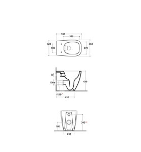 Vaso wc a terra SenzaBrida, filo parete. Misure: 55 x 36 x H.43 cm. Peso 27,5kg.